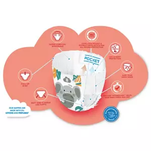Size 8 Nappy Pant, 24 pack. Leak Lock Pockets – A protective pocket to help with leakage & poo explosions . Up to 12hrs Day & Night Protection. DryFast technology – Helps keep baby fresh & dry. Soft & Flexible Leg Cuffs. Pull up and go!. Easy tear away sides. Super stretchy waistband. 0% Lotions and Perfumes.