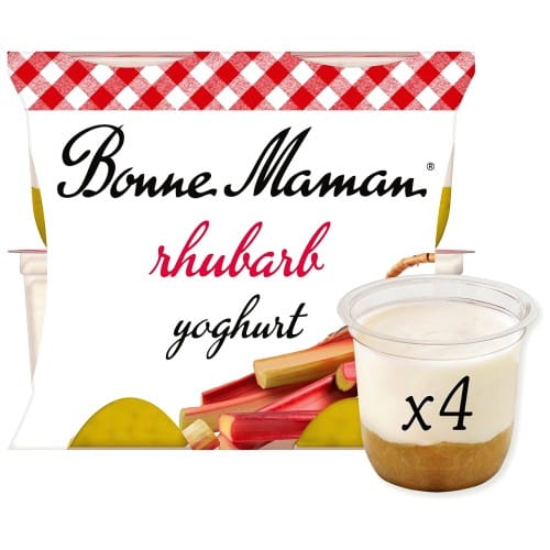 “These yoghurts have a creamy slightly sweet yoghurt with rhubarb at the bottom of the pot”…