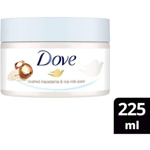 - Polish skin with Dove Crushed Macadamia & Rice Milk Body Scrub