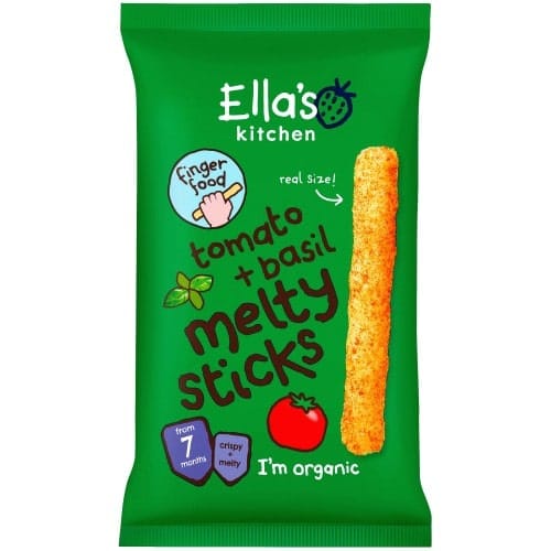 - Organic tomato + basil maize sticks