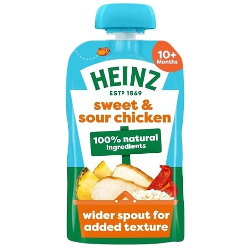 • Heinz By Nature Sweet & Sour Chicken pouch contributes to 2 of baby’s 5 a day