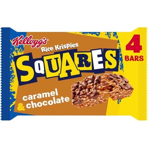 - Rice Krispies Squares snack bars with caramel and chocolate flavour