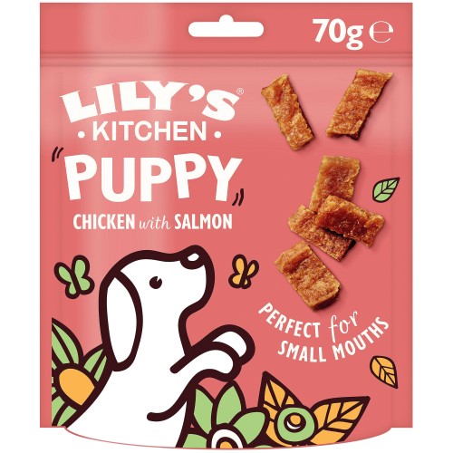 - Mini jerky made with freshly prepared chicken & salmon