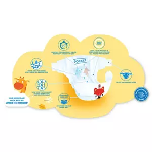 Size 2 New Baby Nappies, 60 pack. Pee Zones – Boy & girl pee zones for targeted absorption. Leak Lock Pockets – To help with leakage & poo explosions . 360 degree leakage protection. Place anywhere tapes for speedy changes. Wetness indicator changes colour when wet. DryFast technology – Helps keep baby fresh & dry. All round gentle softness.
