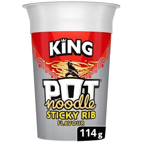 - Pot Noodle Sticky Rib King Pot is a classic noodle dish with Chinese sticky rib flavour sauce and vegetables