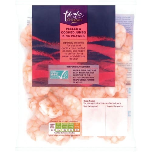 - Individually quick frozen cooked and peeled king prawns