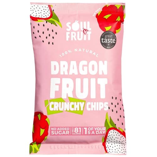 - Crunchy dried Dragon Fruit chips with no added sugar, sulphites or additives