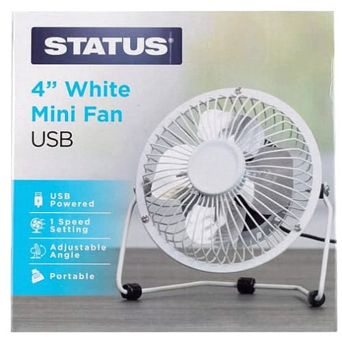 Status 4″ White Mini USB Fan