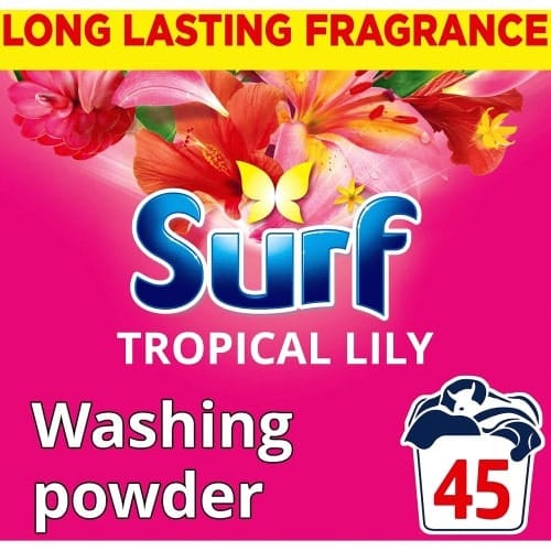 - Surf Tropical Lily Laundry Powder has a tropical scent
